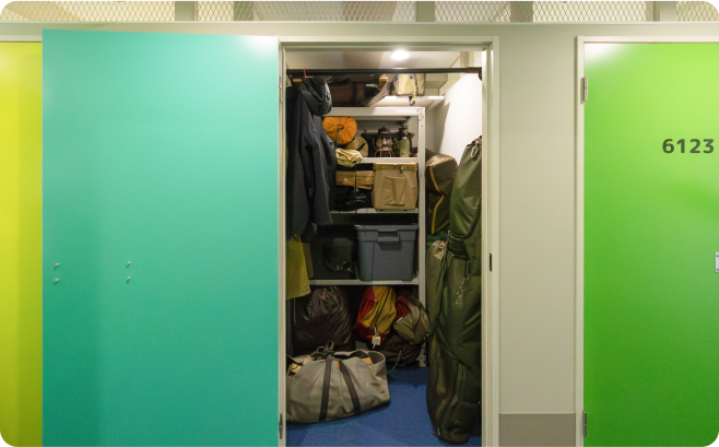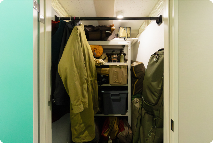 キャンプギアはトランクルームでスッキリ収納
