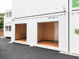 2階建て24時間出し入れ可能な屋外型トランクルームをご用意しました。 防犯カメラでの監視や全部屋に室内照明を設置し、1階には換気扇付のお部屋をご用意しております。