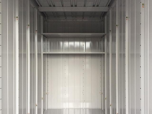開閉がシャッタータイプの屋外型トランクルーム。車が直付けできて、出し入れラクラク。敷地内はLED照明と防犯カメラを完備していますので、夜間でも安心してご利用いただけます。
